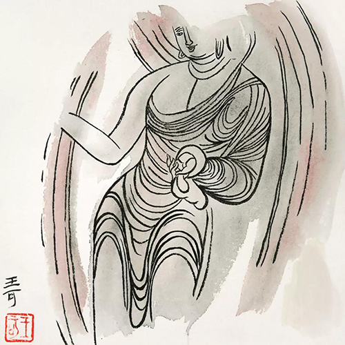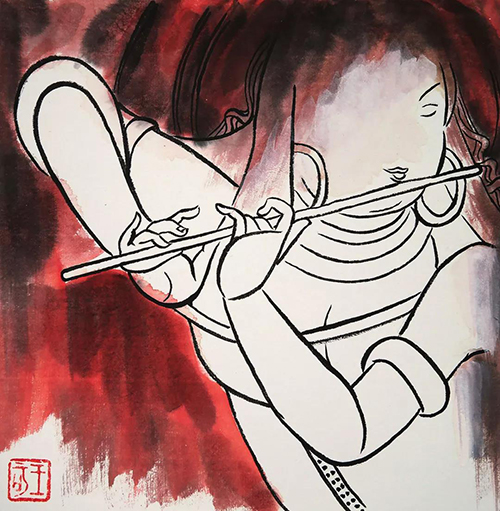 王可 《乐》 宣纸、国画颜料、水粉、墨 28cm×28cm 2019