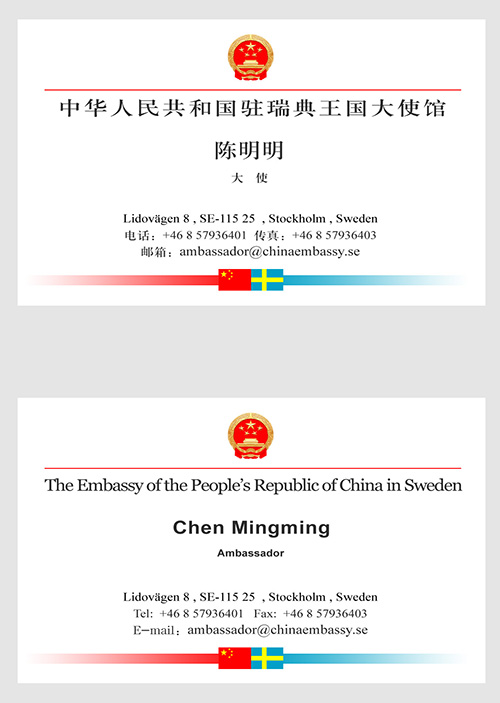 王可 中国驻瑞典大使馆形象设计-名片(横式)等